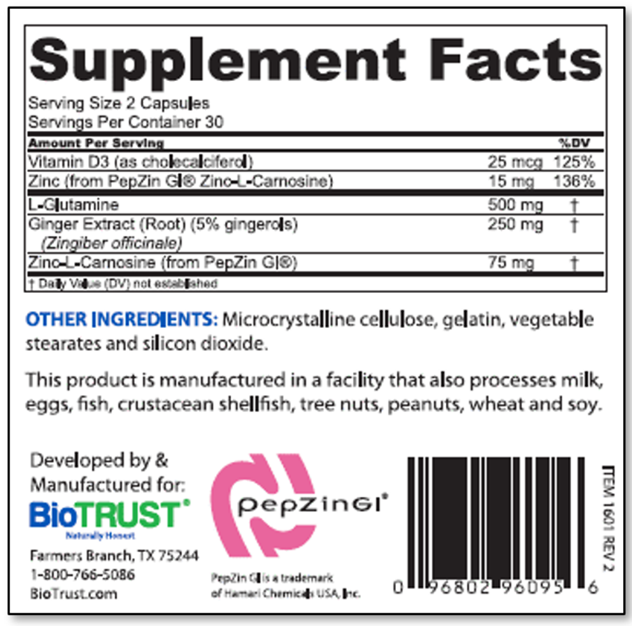 PepZin® GI es un complejo patentado de zinc y L-carnosina que se ha utilizado durante más de 25 años por sus propiedades gastroprotectoras, demostradas en más de 20 estudios publicados. Esta forma quelada especial de zinc se libera lentamente en el estómago, lo que le permite promover la salud y la reparación del tracto gastrointestinal durante un largo periodo. Diversos estudios han demostrado que PepZin GI ayuda a aliviar las molestias gastrointestinales ocasionales, protege la mucosa intestinal, refuerza los mecanismos protectores naturales del estómago y mantiene un entorno gastrointestinal saludable, incluyendo un equilibrio adecuado de bacterias intestinales.†