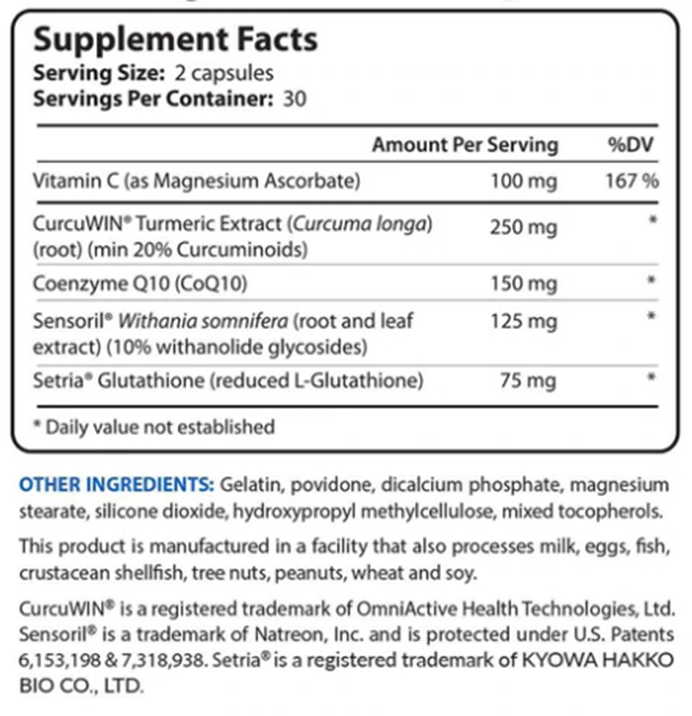 La CoQ10 ayuda a mantener los niveles corporales de este antioxidante estrella, que es crucial para el rendimiento de las mitocondrias y la producción de energía celular.